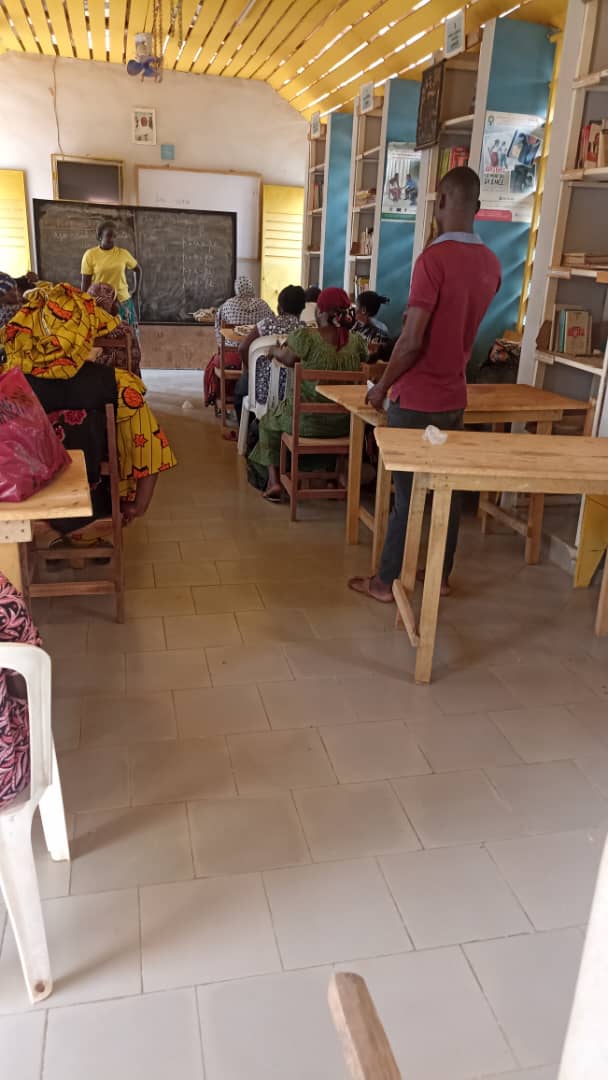 La formation a débuté au centre Chez les Sœurs le jeudi 29 février 2024, s’est poursuivie le 2 mars à la bibliothèque Sita Diallo et Chez Mme Sylla pour prendre fin le mercredi 6 mars 2024 dans les centres Chez Mme YEO et Danzourou. Au total, 98 femmes, toutes mères avec en moyenne trois enfants et mariées ont interagi avec la Sage-Femme COULIBALY Kafiné.