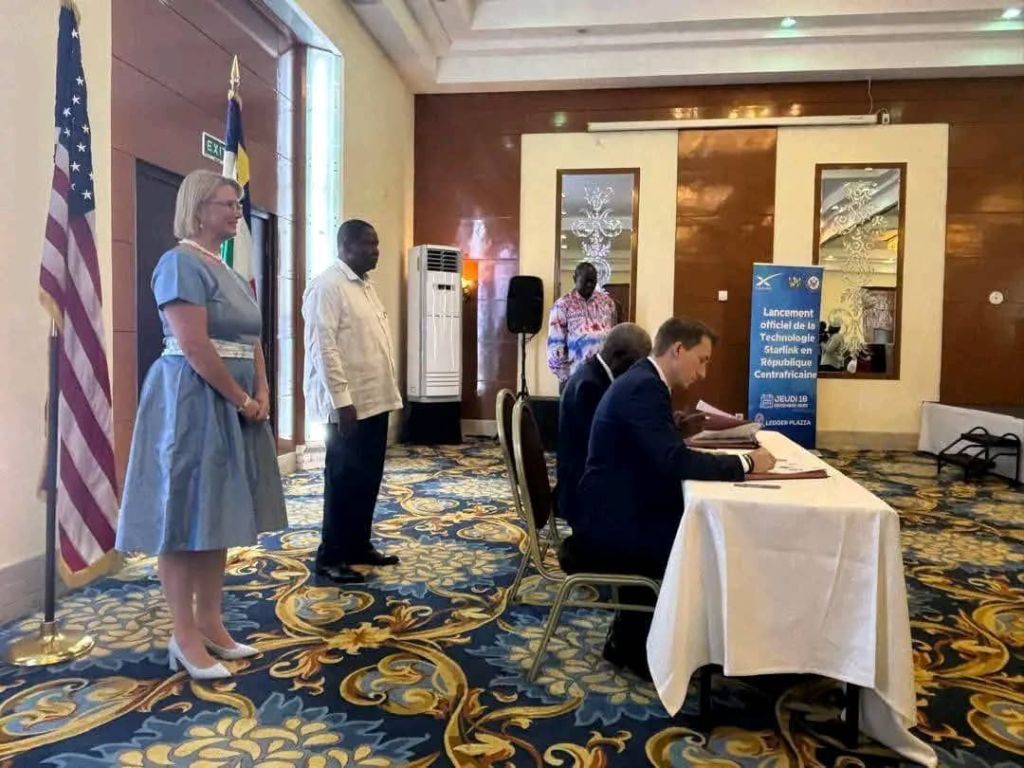 La République Centrafricaine renforce sa stratégie de modernisation numérique avec la signature d’un accord entre le gouvernement et Starlink, officialisée à Bangui en présence du Président de la République, Faustin-Archange Touadéra, et du Ministre de l’Économie numérique, Justin Gourna Zacko.